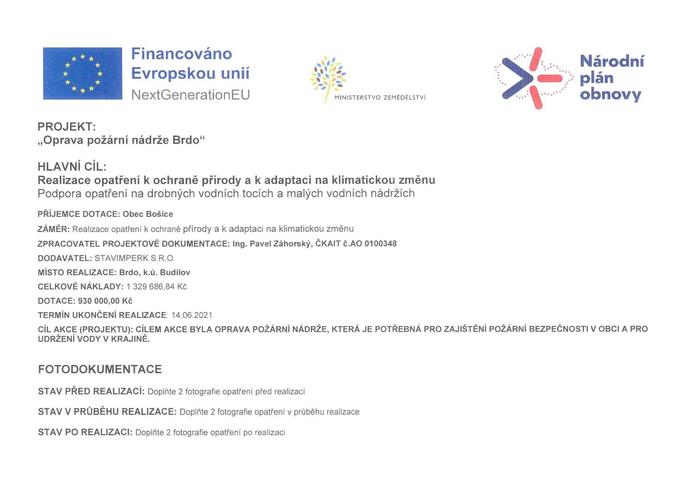Úvodní stránka > Aktuality > PROJEKT „Oprava požární nádrže Brdo“