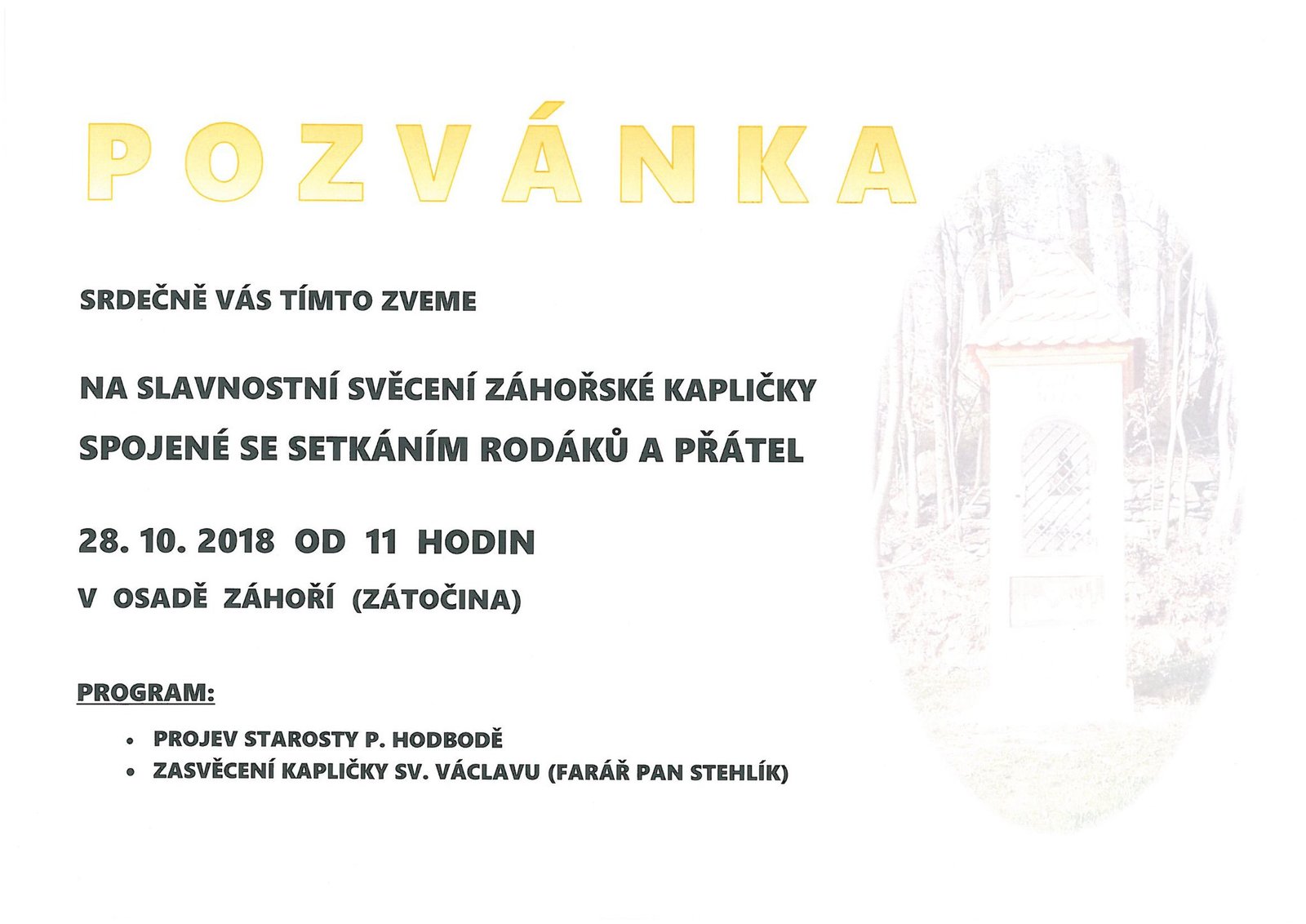 Úvodní stránka > Akce > Slavnostní svěcení záhořské kapličky 28.10.2018